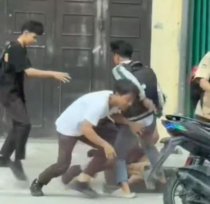 “Remaja yang masih mengenakan seragam sekolah terlihat terlibat keributan dan menjadi tontonan warga sekitar,” tulis akun tersebut.