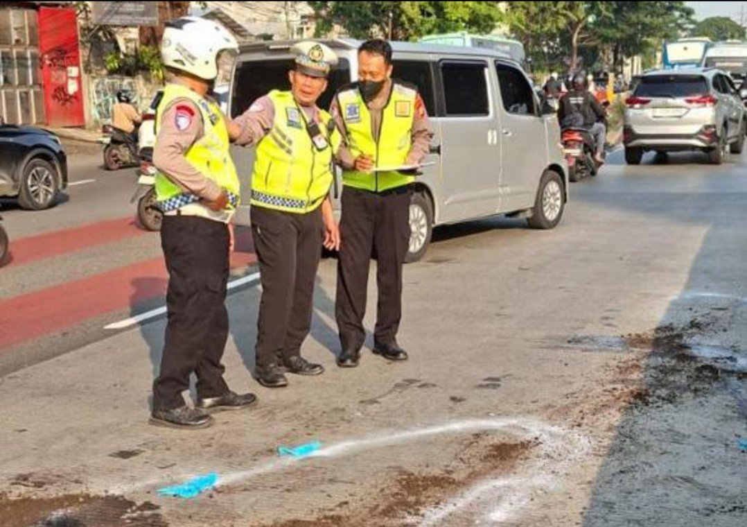 Petugas dari Unit Laka Lantas Polres Metro Jakarta Barat segera mendatangi lokasi untuk melakukan pengamanan dan olah TKP.